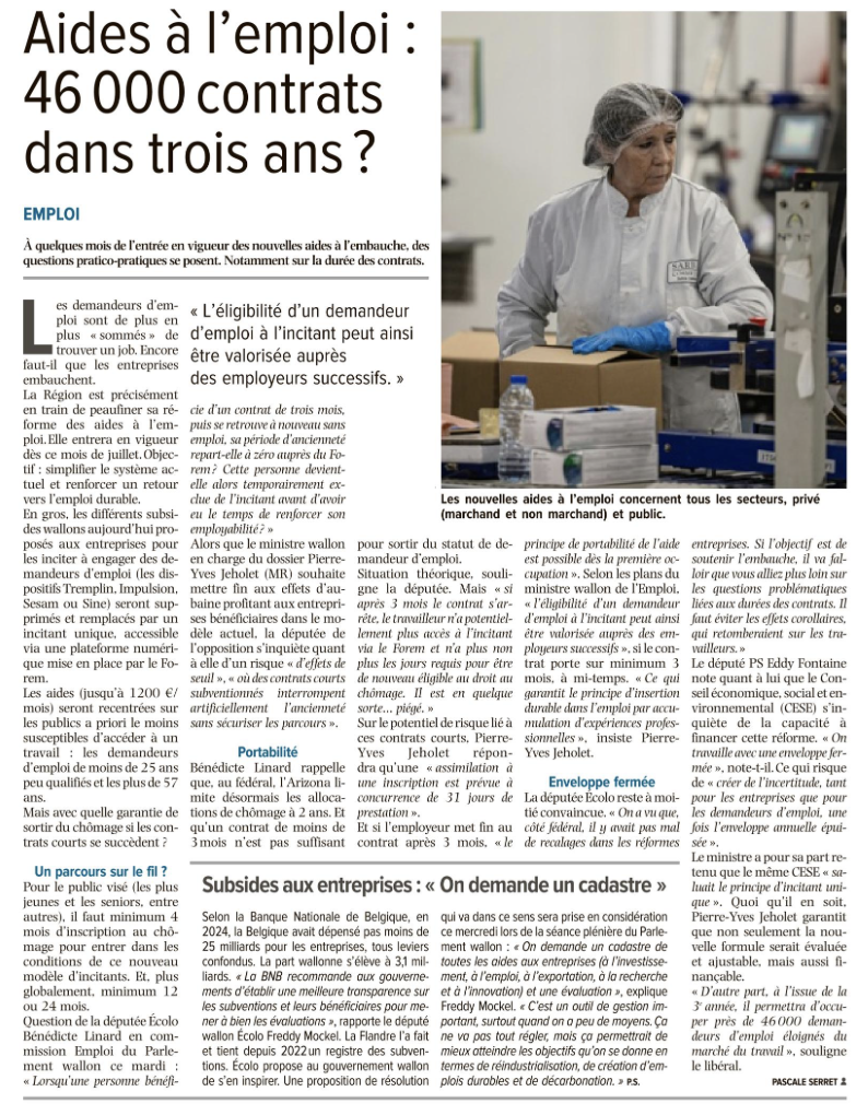 Face au ministre Pierre-Yves Jeholet, j’insiste donc sur la nécessité d’assurer la viabilité et la prévisibilité de cette réforme. Il est essentiel que ce dispositif reste fiable dans le temps, afin d’éviter des effets négatifs sur les travailleurs et de garantir un véritable soutien à l’emploi durable.